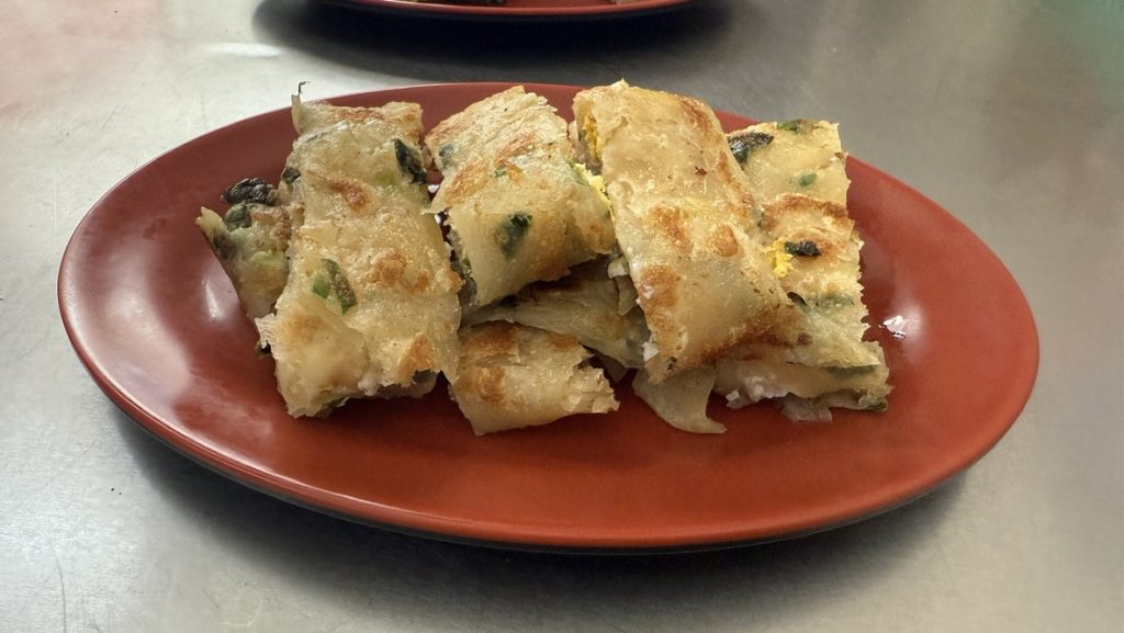 - Breakfast: Taiwanese scallion pancake (street vendors everywhere)