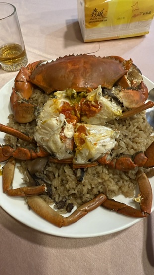 Rice-stuffed crab, wild chicken, Buddha jumps wall soup. Book 2wks ahead. Day 15 finale – amazing crab!