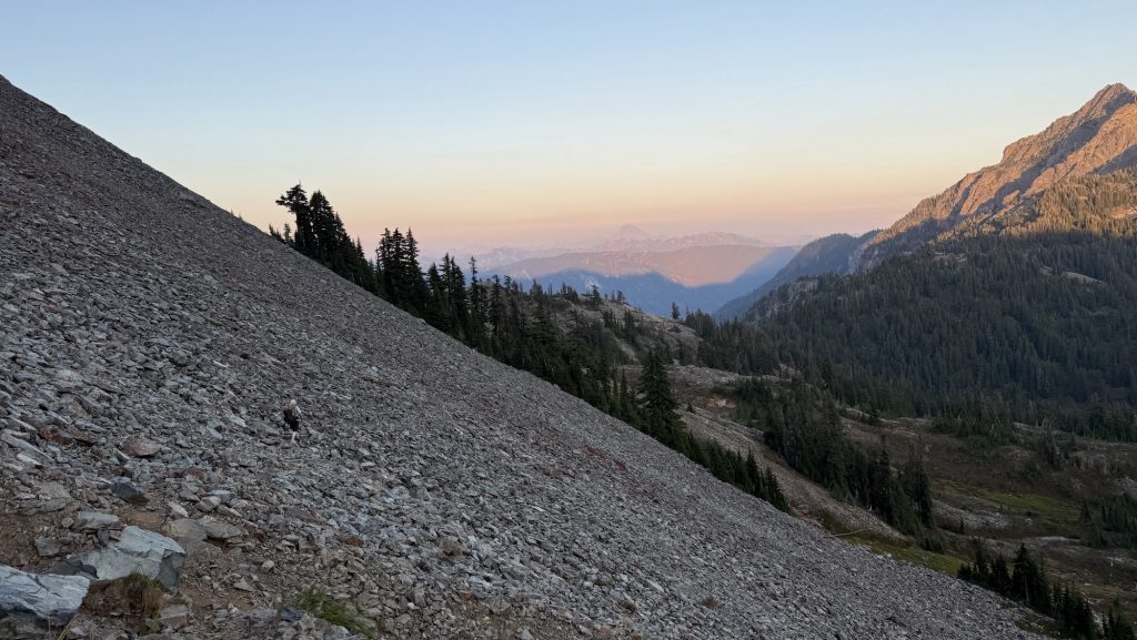 We started hiking at 6.50am. Our goal for today is to hike as much as possible but at least 24 miles. That’s the average we’ll have to hike for the next 22 days to make it to Canada in time of our deadline end of September. It will be tough because Washington has some of the toughest sections since the high sierra, like section K.