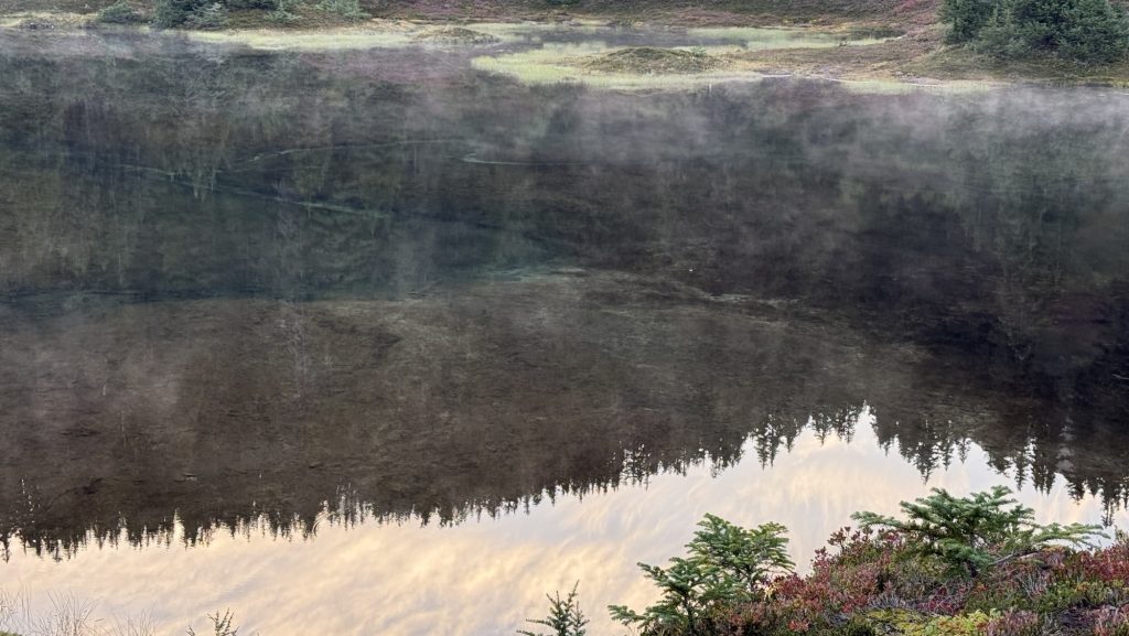 Woke up at 6am and since I fell asleep at 8.30pm the night before, I felt well rested. Not really loving my air mattress. We had breakfast and two coffees in the tent and enjoyed the beautiful Deer Lake with the lake mist, and left at 8am.