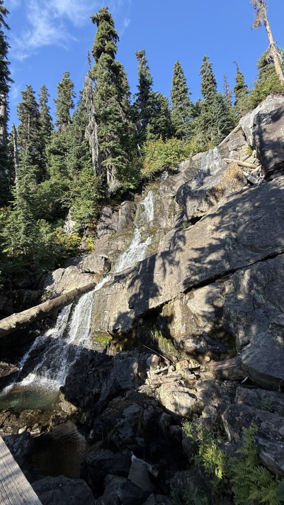 Then we climbed 2500 ft up again and around 4 we stopped at Deception Lake and jumped in – it was gorgeous and very cold. We cliff jumped and cannon balled into the cold water. It was wonderful.