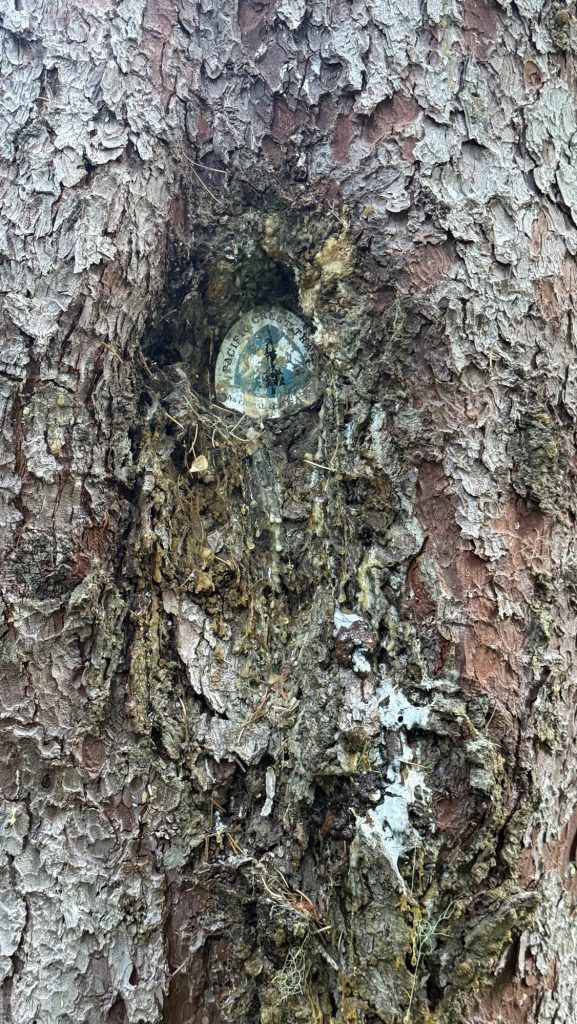 There are silver markers on the trees and people have been writing fun sayings on them – and Iceman marked a few of them with our names.