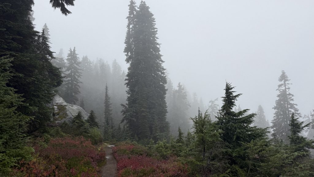 We hiked mostly through forest all day and didn’t see any views that might have been there because of the clouds.